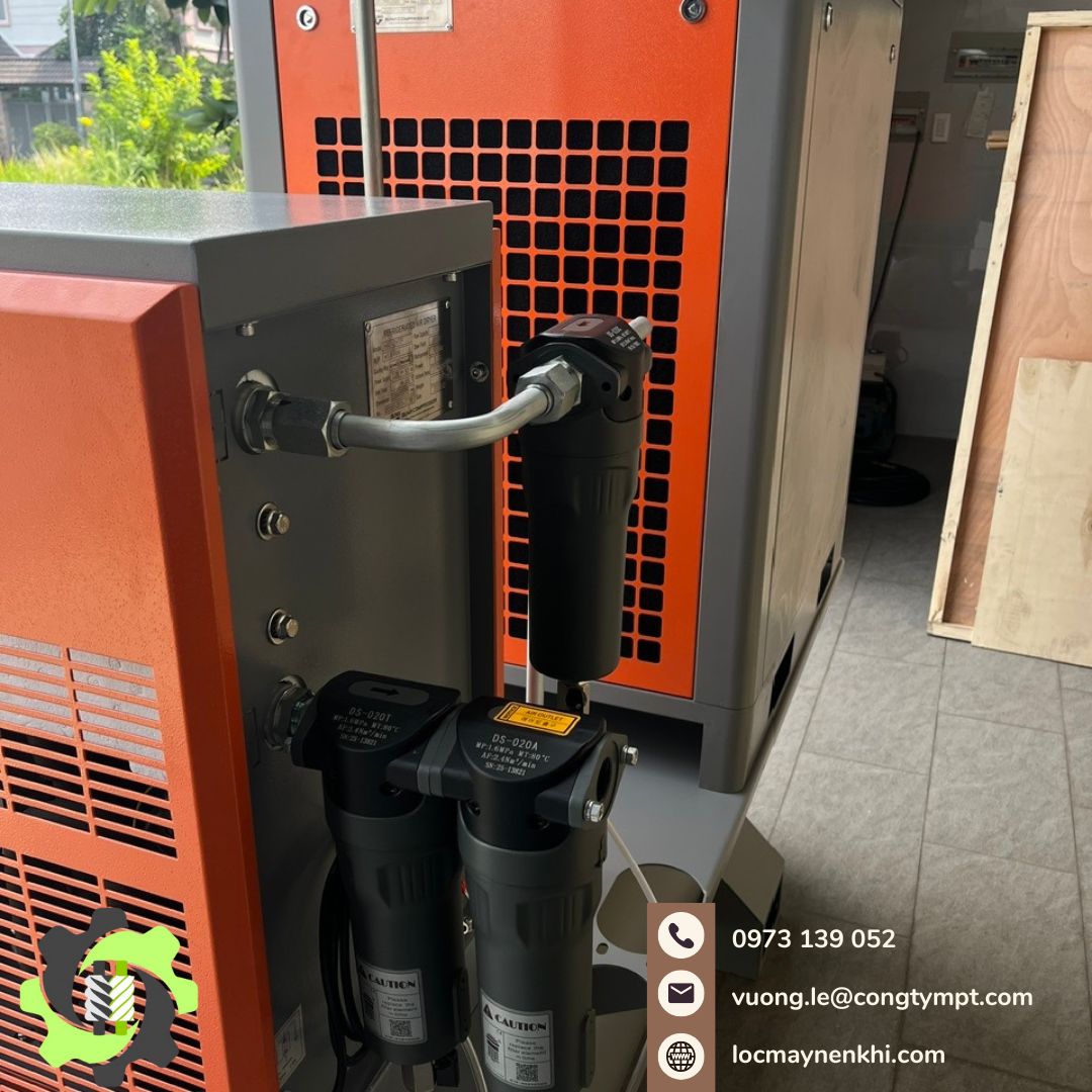 Bộ lọc khí 3 cấp chuyên dụng: Đảm bảo khí nén đầu ra sạch bụi và tách dầu hoàn toàn, cực kỳ quan trọng cho các dòng máy cắt Laser Fiber.