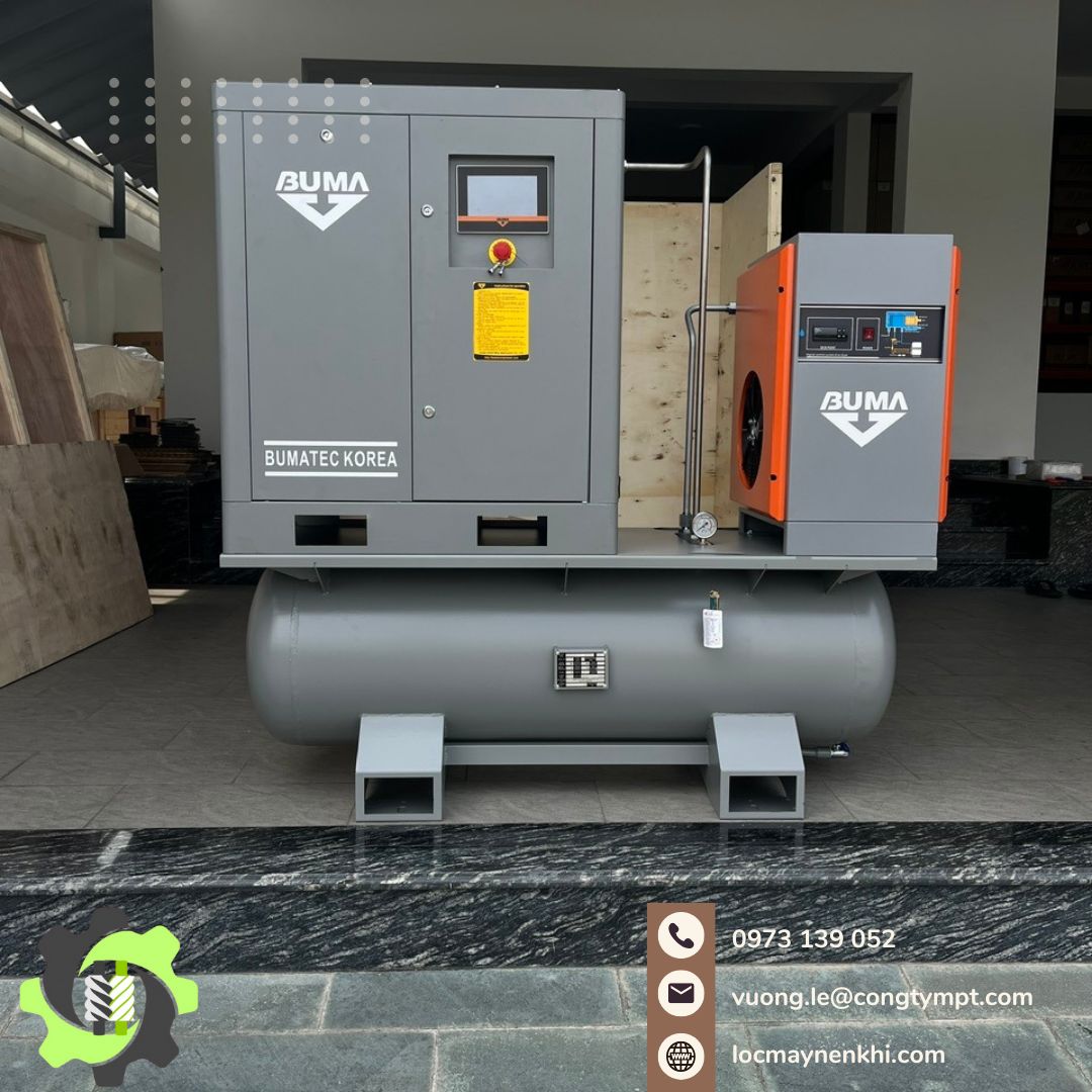 Máy nén khí trục vít 15Kw (20HP) dòng BUMA Combo là dòng máy nén khí thế hệ mới, tích hợp toàn bộ hệ thống xử lý khí nén trong một khối duy nhất. Với công nghệ Inverter tiết kiệm điện và thiết kế siêu gọn, đây là lựa chọn số 1 cho các xưởng cắt Laser, Garage ô tô và Workshop cơ khí chuyên nghiệp.